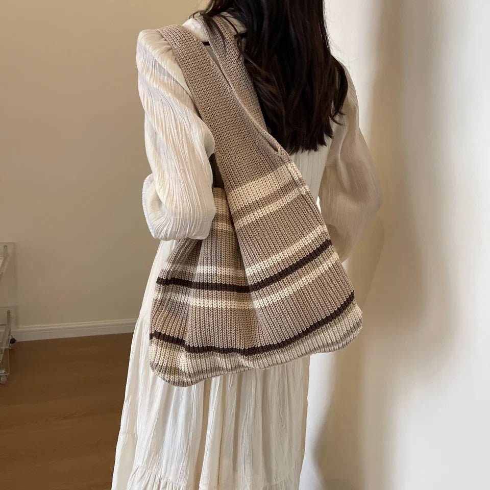 - Lavorazione Artigianale Esclusiva: La trama a righe, lavorata a uncinetto con precisione, crea un motivo grafico unico. È un dettaglio che attira gli sguardi e trasforma la borsa in un pezzo d’arte.